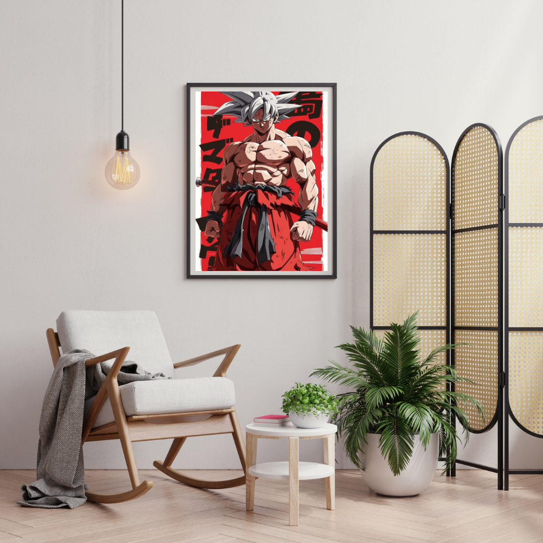The sharp illustration style, dynamic pose, and high-contrast color palette bring explosive energy to the artwork. Every detail—from the powerful stance to the dramatic shadows—symbolizes resilience, discipline, and inner awakening. It’s not just wall decor; it’s a statement of strength and determination.